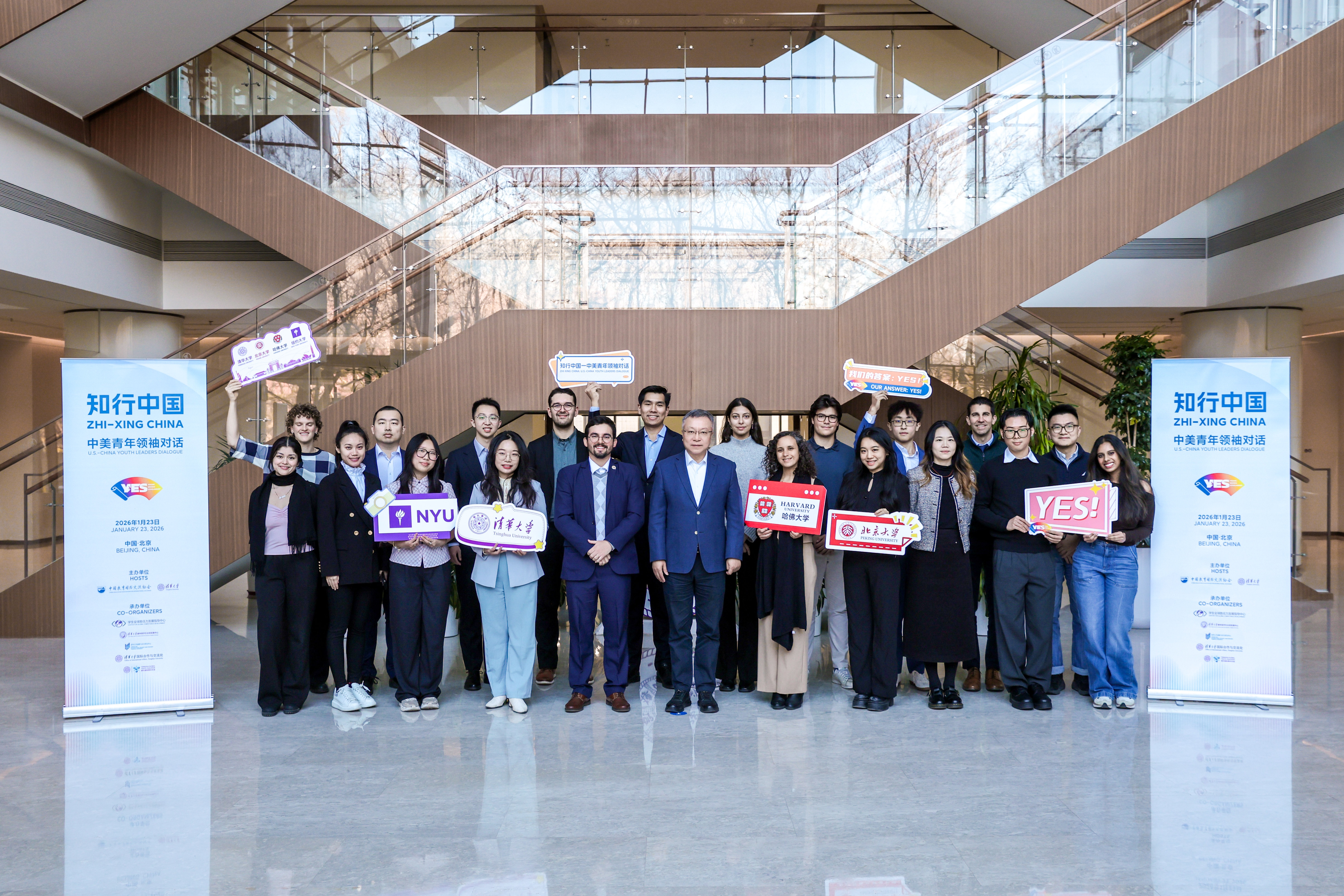 1月23日由中国教育国际交流协会与清华大学联合主办,清华大学学生全球胜任力发展指导中心、清华大学唐仲英学生全球发展中心、清华大学战略与安全研究中心、清华大学国际合作与交流处、清华国际青年对话秘书处共同承办的“知行中国:中美青年领袖对话”活动在清华园成功举办本次活动是落实习近平主席“未来5年邀请5万名美国青少年来华交流学习”重大倡议的具体行动也是“青年使者交流学习计划”(YES项目)框架下的2026年首场品牌活动
