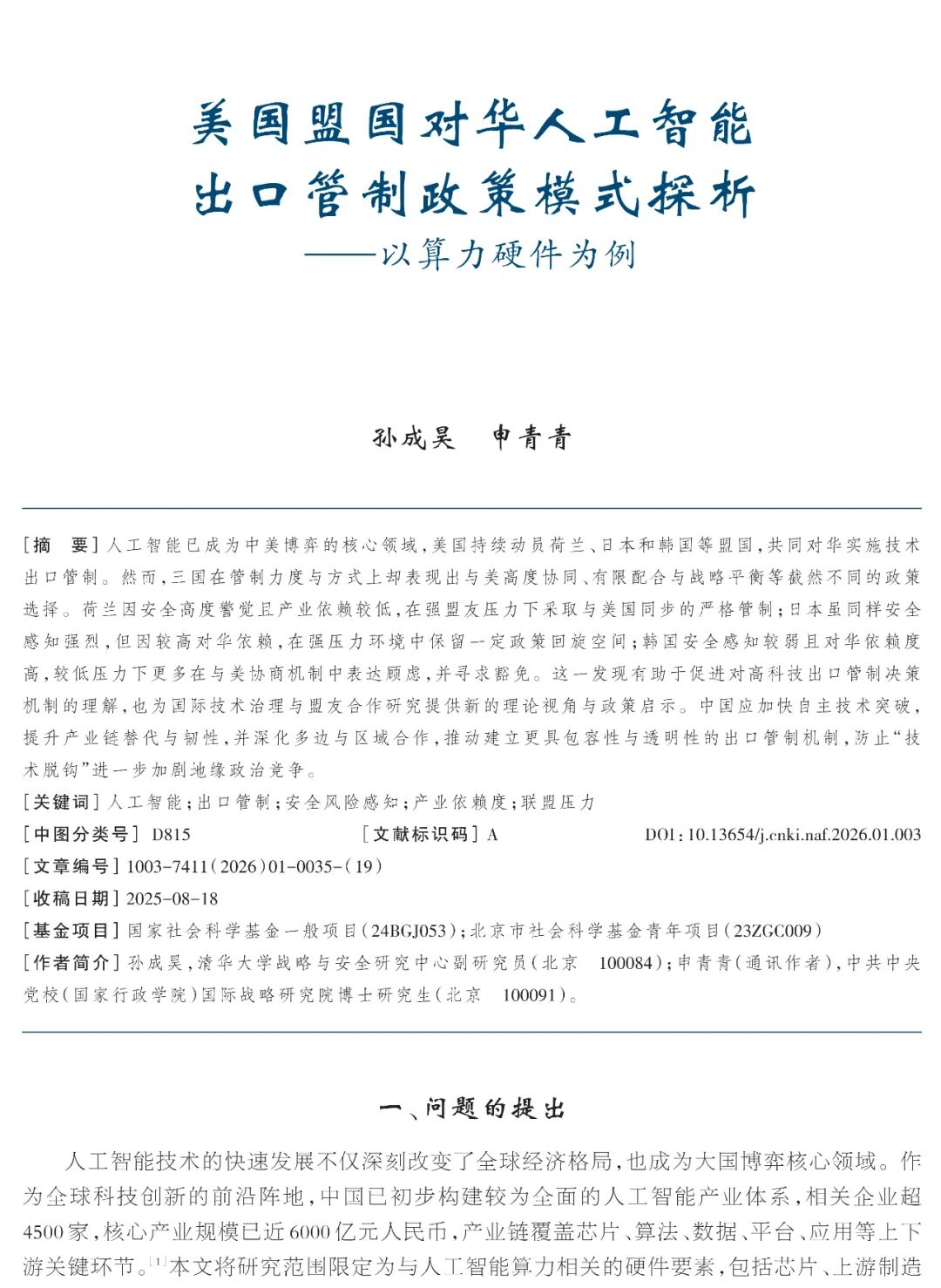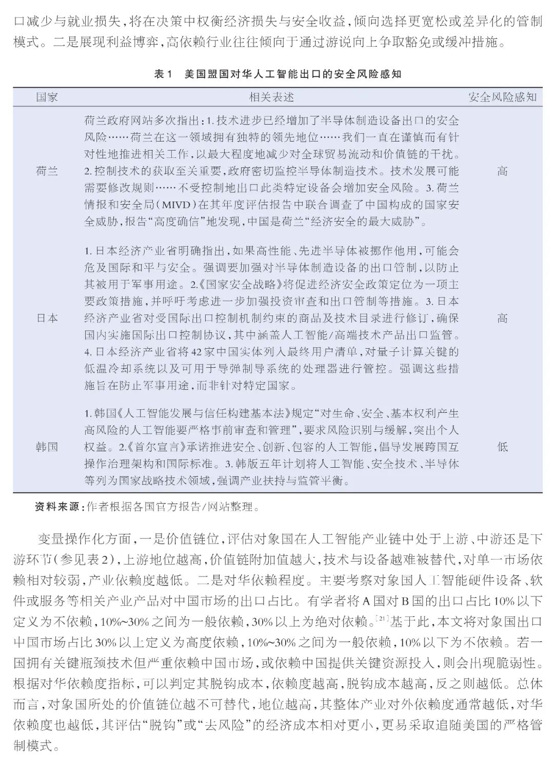 美国盟国对华人工智能出口管制政策模式探析——以算力硬件为例