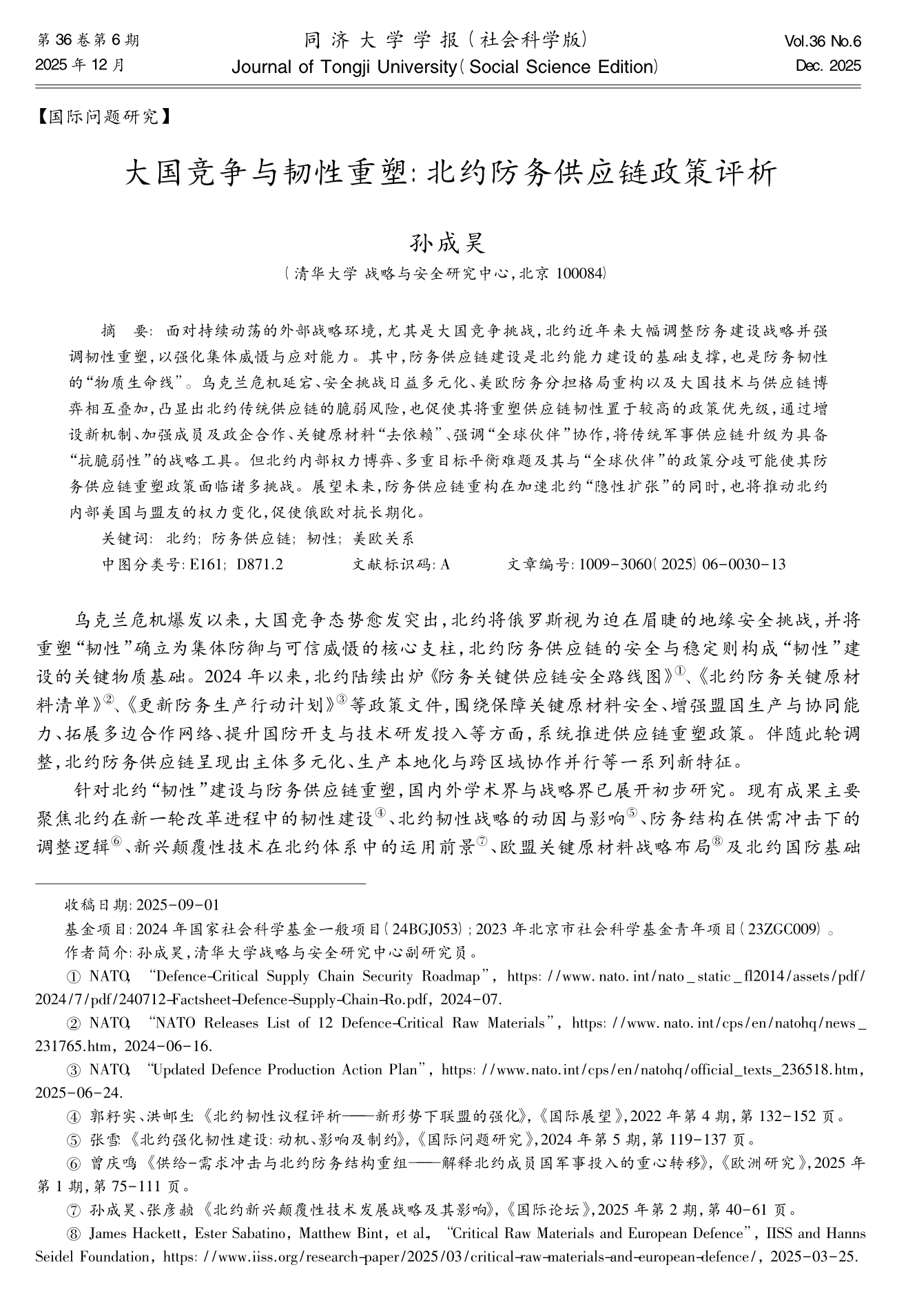 孙成昊 | 大国竞争与韧性重塑:北约防务供应链政策评析